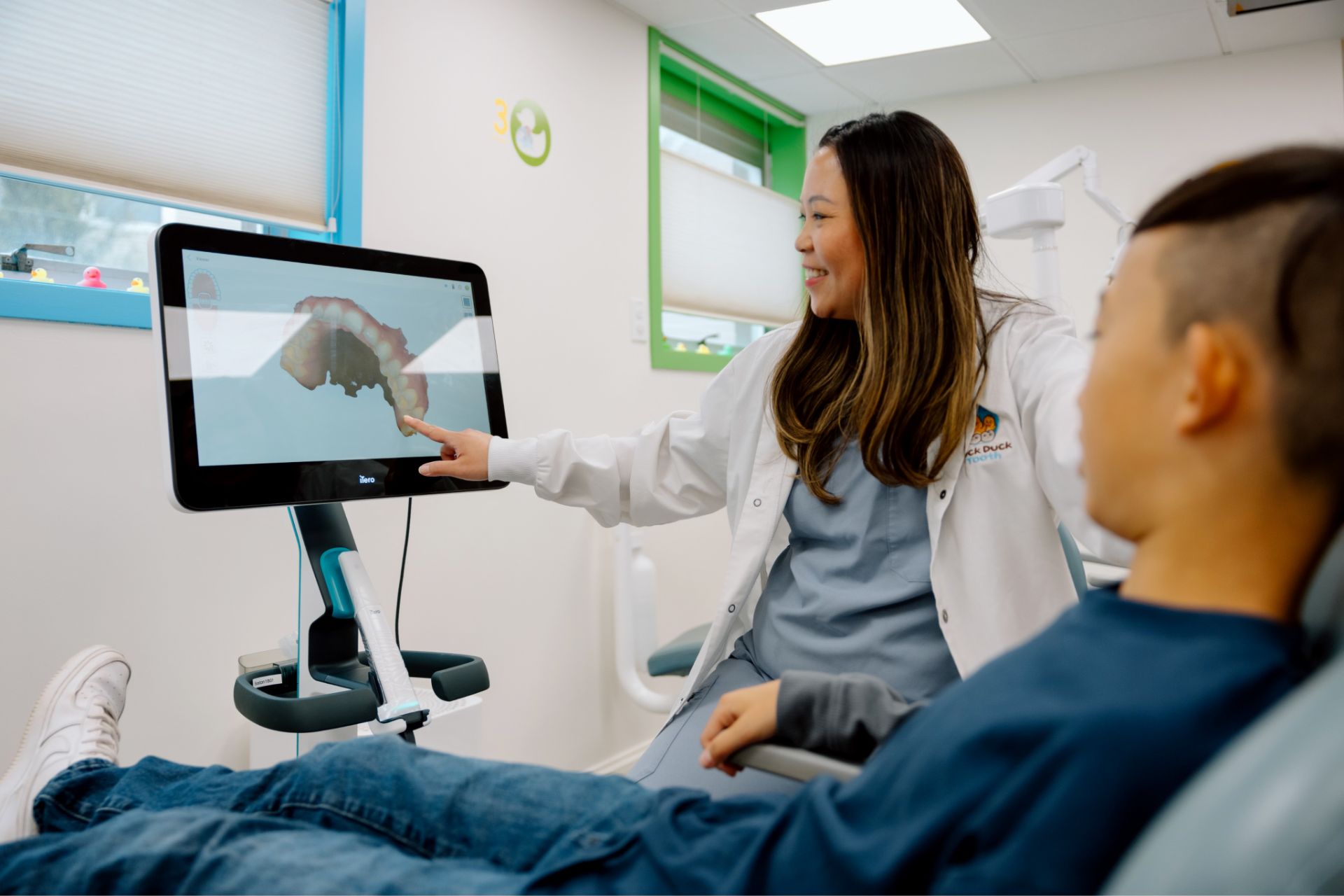 We offer the latest technology and treatments for pediatric dentistry, including a uniquely designed space for kids, iTero intraoral scanner, Orthopos 3D scanner, portable Nomad X-rays, and modern software for seamless communication with parents.